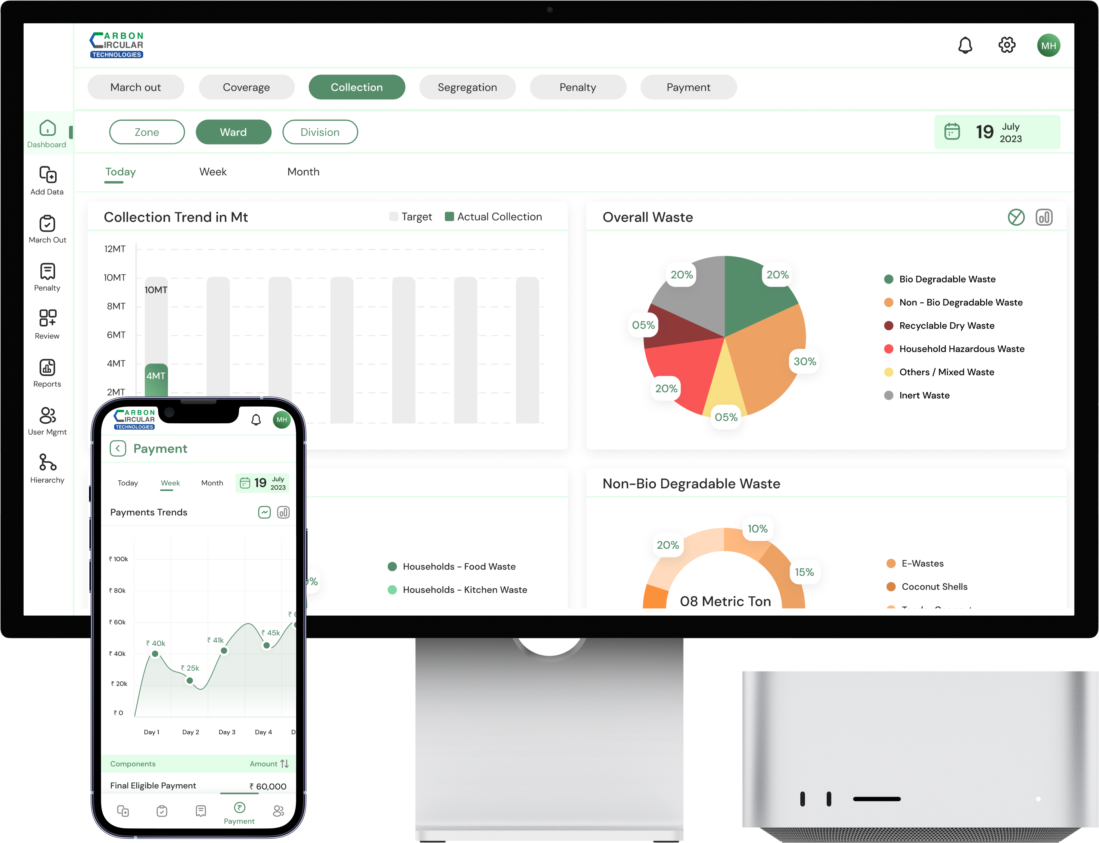 The SWM includes a payment feature that calculates payment details on a daily basis within the premises. Penalty calculation is based on predefined norms and rules. When any violation or non-compliance occurs, the system automatically calculates the penalty amount according to the set guidelines. This ensures that penalties are applied consistently and fairly, without the need for manual intervention, saving time and reducing the chances of errors.